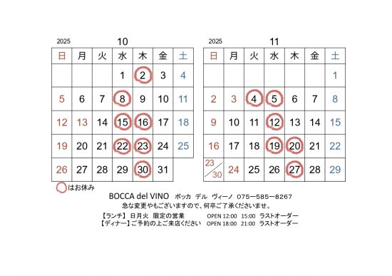 《BOCCA del VINOからの最新おしらせをお届けします》